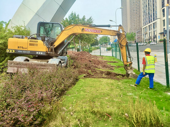 金山寺站由于施工區(qū)域北側為已建成智慧城地塊,南側現(xiàn)狀均為龍湖天街在建工地,東北側為禮嘉智慧公園,東南側為已建成龍湖悠山郡居住小區(qū),市政設施產(chǎn)權單位多、地下管線復雜,前期征拆協(xié)調困難。同時面臨2022中國國際智能產(chǎn)業(yè)博覽會在禮嘉智慧公園內舉辦等因素,征拆工作一度停滯。在業(yè)主及上級單位的全力支持下,項目部及時與重慶市區(qū)相關部門緊密溝通,積極參加管線遷改、綠化移植、市政設施拆除、交通導改等專題會議,完善各項所需報批手續(xù),為施工開挖創(chuàng)造了條件。