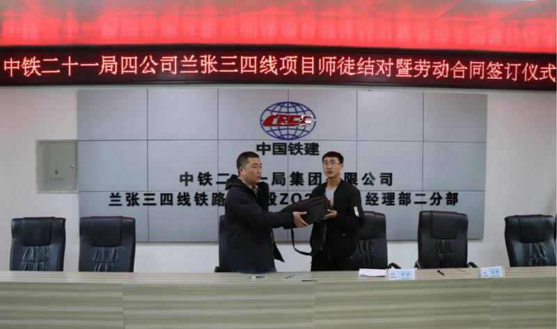 9月17日,中鐵二十一局四公司蘭張三四線鐵路項(xiàng)目部對2022年新入職員工結(jié)束為期半個月的入職培訓(xùn)后,舉行了新入職員工導(dǎo)師帶徒暨勞動合同簽約儀式。