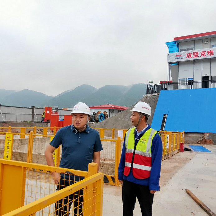 項目經(jīng)理曹元均(左)現(xiàn)場帶班