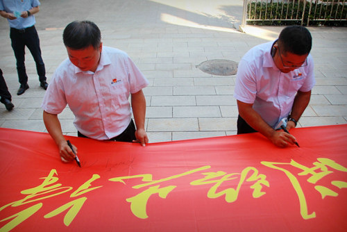 活動(dòng)結(jié)束后,黨總支組織參觀人員一并在“傳承筑路精神 為黨爭光有我”主題橫幅以及“開路先鋒”旗幟上進(jìn)行了簽字承諾。(李梅)