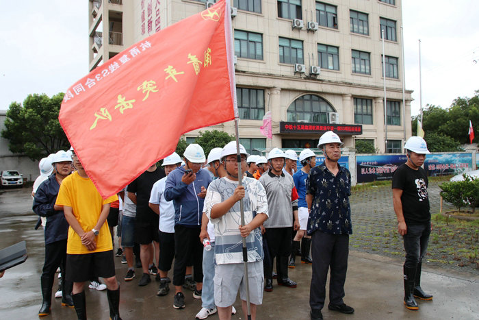 今年9月超強臺風(fēng)“軒蘭諾”“梅花”襲擊寧波前,項目部廣大黨員身先士卒,沖鋒陷陣,在工地進出口筑起鋼鐵擋墻,加固工地設(shè)施,安全轉(zhuǎn)移400名員工。“梅花”離境后,在避災(zāi)所澥浦中學(xué)的103名員工在黨員的帶動下,有序撤離,并將居住過的體育館場地打掃得干干凈凈,寧波日報以《撤離后,他們留下整潔和文明》報道了撤場全過程,在寧波當(dāng)?shù)匾饛娏曳错憽?/span>