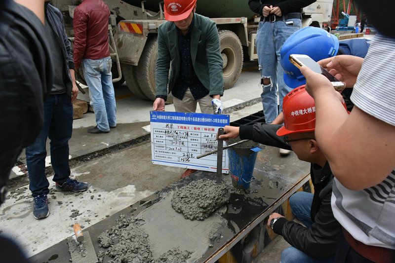 澆筑前一夜,現(xiàn)場(chǎng)技術(shù)員和班組人員仍加班加點(diǎn),挑燈夜戰(zhàn),認(rèn)真執(zhí)行首件制。模板試拼、鋼筋綁扎及波紋管定位、模板拼裝等工藝嚴(yán)格按照項(xiàng)目公司、總監(jiān)辦、駐地辦要求進(jìn)行檢驗(yàn)、驗(yàn)收,確保各項(xiàng)參數(shù)滿足技術(shù)要求和設(shè)計(jì)規(guī)范,這也為第一片T梁的成功澆筑奠定了堅(jiān)實(shí)基礎(chǔ)。澆筑前,及時(shí)報(bào)驗(yàn)監(jiān)理,并組織現(xiàn)場(chǎng)技術(shù)交底。澆筑過(guò)程中,項(xiàng)目部、工區(qū)全員參加,全程控制,確保首片T梁達(dá)到“內(nèi)實(shí)外美、首件示范”的效果。項(xiàng)目公司、總監(jiān)辦、駐地辦均出席首片T梁預(yù)制現(xiàn)場(chǎng)。