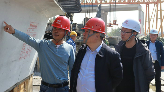圖為項目總工牛六喜(左一)陪同張小衛(wèi)(左二)檢查制梁質(zhì)量子項目經(jīng)理黎衛(wèi)國表示,孝漢應(yīng)項目全體參建人員將以此次指導(dǎo)為契機,守牢安全生產(chǎn)“紅線”,繼續(xù)保持高昂的斗志,進一步掀起大干熱潮,確保高質(zhì)量完成年度建設(shè)任務(wù)。