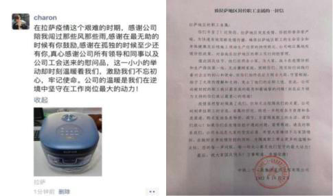 國(guó)慶期間,中鐵二十一局四公司拉薩地區(qū)被封控的職工依然駐守在疫情防控和施工生產(chǎn)第一線,舍小家、為大家,他們無(wú)法兼顧家庭,陪伴親人,用實(shí)際行動(dòng)踐行著對(duì)企業(yè)的初心和使命,而后方的家人始終顧全大局、默默堅(jiān)守,不斷地給予他們溫暖和關(guān)懷,大家齊心協(xié)力,共同為該公司筑起疫情防控的堅(jiān)固防線。