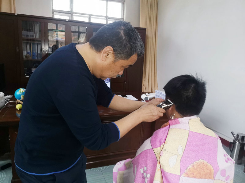 理發(fā)活動一開始,就見史路江左手拿著梳子,右手拿著剪刀,一會與理發(fā)職工溝通發(fā)型問題,一會又換上了推子,在辦公室忙得熱火朝天,像個陀螺一樣停不下來,一名職工剛出去不久另一名又來了,不到半天就為7位職工完成了剪發(fā)。“雖然工具不多,但史師傅的剪發(fā)手藝絕對是總監(jiān)級別的”,新入職大學(xué)生張配銜看著自己的新發(fā)型滿意地說。