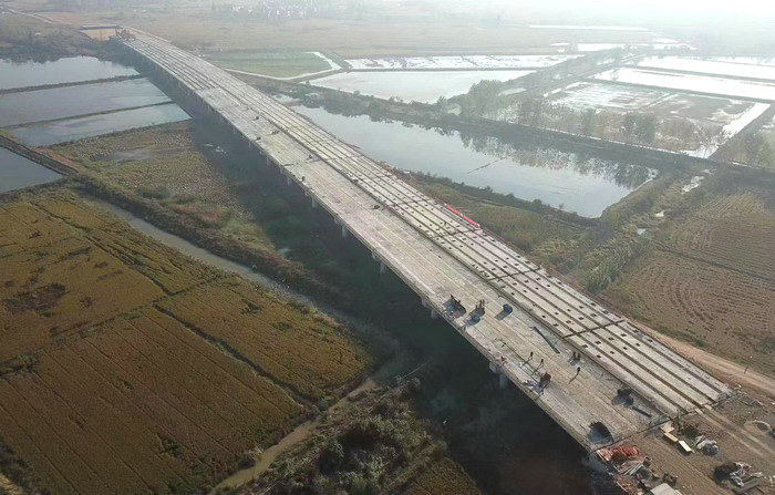 圖為已完成箱梁架設(shè)的豐樂大橋