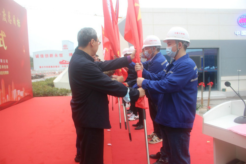 在儀式上,總承包部副指揮長陳華富宣讀了勞動(dòng)競賽活動(dòng)實(shí)施方案,指揮長李兵作了動(dòng)員講話,18標(biāo)項(xiàng)目部經(jīng)理趙建偉表態(tài)發(fā)言,總承包部指揮長李兵與各標(biāo)段簽訂了勞動(dòng)競賽包保責(zé)任書,出席儀式領(lǐng)導(dǎo)給“工人先鋒號”、“黨員安全質(zhì)量監(jiān)督崗”、“青年突擊隊(duì)”授旗。