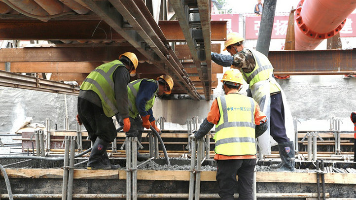 工人正在進行現(xiàn)場澆筑