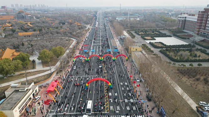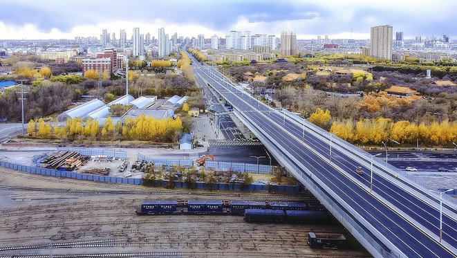 齊齊哈爾民航路跨線橋工程是該市“雙向雙軸、一環(huán)九射”主干路網(wǎng)布局的重要組成部分??偼顿Y5.74億元,全長2.793公里,主路雙向六車道,設(shè)計(jì)時速60公里。其中主橋長352米、寬34.4米,跨越哈齊高鐵等 21 股鐵路,雙側(cè)轉(zhuǎn)體總重量55000噸,創(chuàng)造了嚴(yán)寒地區(qū)同類結(jié)構(gòu)橋梁跨度最大、噸位最重的兩項(xiàng)中國之最。