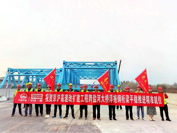 11月6日,經(jīng)過15小時50分鐘的連續(xù)奮戰(zhàn),中鐵一局京滬高速公路HA4標(biāo)項目鹽河大橋主跨長95米、重1450噸的鋼桁梁精準(zhǔn)就位于接收端支架,這是繼去年右幅鋼桁梁順利浮拖過河又一次對鋼桁梁浮拖施工技術(shù)的進(jìn)一步驗證及提煉,同時標(biāo)志著本項目橋梁重難點工程施工全部完成。
