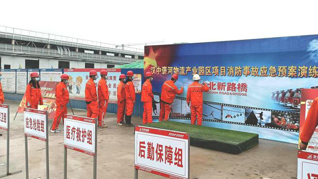 為進一步增強施工作業(yè)人員消防安全意識,提高火災(zāi)險情應(yīng)急處置和逃生自救能力。11月8日,北新路橋集團西安分公司漢中褒河物流園項目圍繞“抓好消防安全,保高質(zhì)量發(fā)展”活動主題,組織開展“消防宣傳月”應(yīng)急救援演練活動。