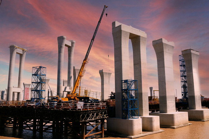 本網(wǎng)訊 11月9日下午4點(diǎn),中鐵十五局集團(tuán)杭甬項(xiàng)目濱?;ネ‵匝道第一片重達(dá)160噸的疊合梁架設(shè)完成,以此開(kāi)啟疊合梁架設(shè)序幕。
