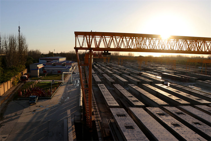為確保工期節(jié)點(diǎn)目標(biāo),該項(xiàng)目始終以“質(zhì)量與安全齊抓、進(jìn)度與效率并重”為原則,以“智能化、科技化、信息化”作為建設(shè)要點(diǎn),著力打造新型梁場(chǎng)、智慧工地,讓箱梁預(yù)制生產(chǎn)“飛”起來。制梁場(chǎng)建設(shè)之初,六工區(qū)項(xiàng)目統(tǒng)籌規(guī)劃,科學(xué)部署,從預(yù)制梁場(chǎng)選址、規(guī)劃到建設(shè),僅用50余天就實(shí)現(xiàn)梁場(chǎng)正式投產(chǎn),并于2021年3月24日完成首榀箱梁預(yù)制施工。