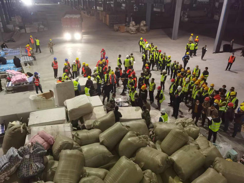 項(xiàng)目志愿者搬運(yùn)重慶市江津方艙醫(yī)院急需防疫物資