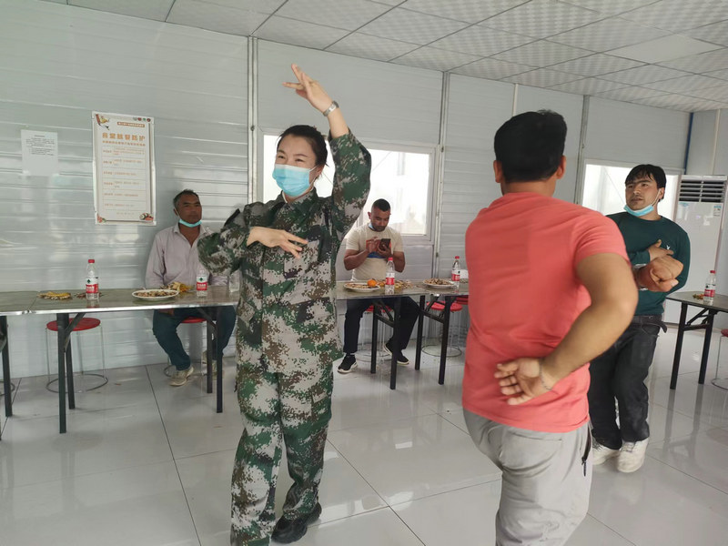 他們還經(jīng)常性地開(kāi)展心理疏導(dǎo)小游戲,豐富業(yè)余文化生活,適時(shí)開(kāi)展球類(lèi)、棋類(lèi)文體比賽,舒緩農(nóng)民工心理壓力。昆玉職業(yè)技術(shù)學(xué)院(一期)項(xiàng)目一名甘肅籍農(nóng)民工小劉性格內(nèi)向,不善與工友交流,心理輔導(dǎo)過(guò)程中,項(xiàng)目部會(huì)計(jì)李娜化身成為“知心姐姐”,利用“共情”方式展開(kāi)疏導(dǎo),并利用自身特長(zhǎng),經(jīng)常給小劉唱新疆民歌、跳新疆民族舞蹈,多方努力下,小劉慢慢卸下了心理包袱,變得活潑開(kāi)朗起來(lái),工作也更有勁了。