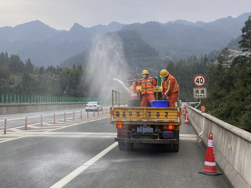 在各交安項(xiàng)目鏖戰(zhàn)大干的同時(shí),金路公司各養(yǎng)護(hù)項(xiàng)目也絲毫沒(méi)有停步。為保證項(xiàng)目施工如期進(jìn)行,渝西養(yǎng)護(hù)中心的工人們住進(jìn)了銅梁北收費(fèi)站,全力沖刺渝遂高速護(hù)欄改造工程;渝東養(yǎng)護(hù)中心則趕在冰雪雨霧惡劣天氣到來(lái)前組織各工區(qū)對(duì)抗冰除雪工作進(jìn)行經(jīng)驗(yàn)交流,全面完善優(yōu)化應(yīng)急響應(yīng)、物資儲(chǔ)備、融劑使用、督導(dǎo)檢查等清雪機(jī)制,為冬季抗冰除雪保暢工作做好充分準(zhǔn)備。