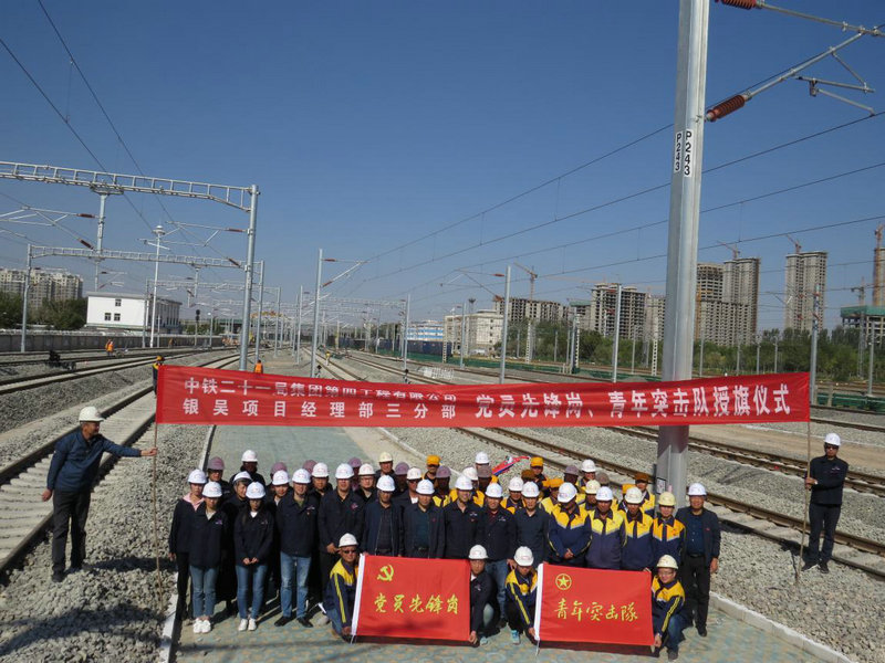 “黨員先鋒崗”、“青年突擊隊(duì)”代表鄭重表態(tài),表示謹(jǐn)記先鋒隊(duì)和突擊隊(duì)的責(zé)任,宣揚(yáng)團(tuán)結(jié)互助、攻堅(jiān)克難的模范精神,以昂揚(yáng)的斗志、飽滿的熱情,安全優(yōu)質(zhì)的完成任務(wù),為實(shí)現(xiàn)銀吳鐵路建成通車目標(biāo)而努力拼搏。