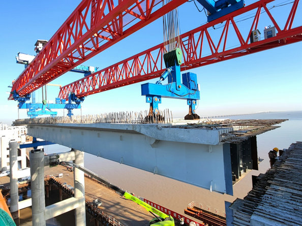 另一臺架橋機即將安裝到位,將一并“聯合作戰(zhàn)”,架梁大提速,有望如期完成架梁任務。