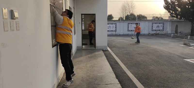 “李達(dá)負(fù)責(zé)學(xué)習(xí)室、辦公室衛(wèi)生,學(xué)習(xí)室的桌椅擦過(guò)后要擺放整齊。衛(wèi)生間及浴池由李金秋負(fù)責(zé),特別注意,衛(wèi)生間及浴池在拖地時(shí),一定要將拖把的水瀝凈才能拖地,以免天冷地面結(jié)冰。殷陳澳、徐海根負(fù)責(zé)各個(gè)區(qū)域的窗臺(tái)、玻璃,每個(gè)地方都要擦干凈,特別是窗臺(tái)死角必須全面徹底清理……”王寨示范隊(duì)在早上點(diǎn)名時(shí),當(dāng)日輪值工長(zhǎng)王樂(lè)對(duì)環(huán)境衛(wèi)生整治進(jìn)行詳細(xì)布置。清掃院內(nèi)、擦拭窗戶、清理死角……每個(gè)人按照分工對(duì)區(qū)域衛(wèi)生認(rèn)真打掃。一上午,值班人員對(duì)區(qū)域衛(wèi)生全部打掃完畢,一個(gè)窗明幾亮、整潔干凈的衛(wèi)生環(huán)境呈現(xiàn)眼前。