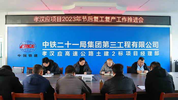 本網(wǎng)湖北孝感1月31日訊(通訊員 賈瑛 王磊)1月30日,中鐵二十一局三公司孝漢應(yīng)項目部,召開兔年春節(jié)后復(fù)工復(fù)產(chǎn)工作推進會,督促全體參建員工盡快進入工作狀態(tài),及早“收心歸位”,全面恢復(fù)生產(chǎn)建設(shè)。
