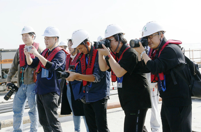 該公司承建的杭甬復(fù)線濱海高架、濱?;ネㄈL(zhǎng)14.6公里,占海面積613.03畝,設(shè)計(jì)鋼棧橋14.9公里、樁基1736根、橋墩810座。其中濱?;ネㄈL(zhǎng)9705米,由4座拼寬橋、8座匝道橋構(gòu)成,是目前亞洲最大的海上互通、寧波市的地標(biāo)性建筑,備受各方關(guān)注。該項(xiàng)目從2019年8月開工以來(lái),以打造國(guó)優(yōu)工程為奮斗目標(biāo),堅(jiān)決落實(shí)法人管項(xiàng)目各項(xiàng)制度,制定安全、質(zhì)量等幾十個(gè)方案,科學(xué)組織人力、機(jī)械設(shè)備投入施工,并大力開展“六比六看”勞動(dòng)競(jìng)賽,從架設(shè)鋼棧橋、鉆孔樁施工到承臺(tái)和墩柱作業(yè),建筑工地如火如荼。在遭遇2021年和2022年4次超強(qiáng)臺(tái)風(fēng)襲擊和新冠肺炎疫情、施工生產(chǎn)受到嚴(yán)重影響的情況下,項(xiàng)目部啟動(dòng)應(yīng)急預(yù)案,一面抗臺(tái)風(fēng),一面戰(zhàn)疫情,將自然災(zāi)害造成的損失減至最低,確保了各節(jié)點(diǎn)目標(biāo)的如期實(shí)現(xiàn):主線棧橋成功下穿金塘大橋,樁基施工安全跨越排污管道、直徑4.5米原油管道、取水盾構(gòu)隧道、500千伏特高壓海纜等17道管線,810座橋墩?qǐng)A滿完成。下部結(jié)構(gòu)各節(jié)點(diǎn)如期完成,為上部架梁創(chuàng)造了條件。中央電視臺(tái)先后4次在新聞聯(lián)播中對(duì)杭甬項(xiàng)目重大節(jié)點(diǎn)進(jìn)展作了報(bào)道,人民日?qǐng)?bào)、新華社、中新社及浙江日?qǐng)?bào)、北京日?qǐng)?bào)等國(guó)內(nèi)多家省級(jí)媒體也紛紛對(duì)杭甬項(xiàng)目進(jìn)展進(jìn)行報(bào)道。