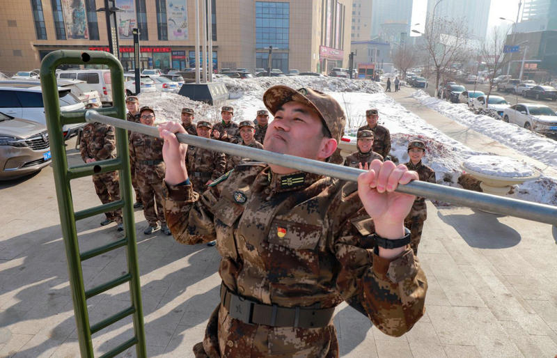 立正、稍息、停止間轉(zhuǎn)法……通過教官的動作示范,學(xué)員們重點圍繞隊列、擒敵拳、體能等內(nèi)容進行訓(xùn)練。舉行了升國旗儀式、民兵宣誓、集體唱軍歌活動,開展了俯臥撐、引體向上等體能競賽?;顒幼詈?,還組織了10名民兵進行野外拉練爬雪山活動,進一步提高了民兵軍事素質(zhì),彰顯“軍”的屬性、提升“兵”的能力,夯實維穩(wěn)戍邊看家本領(lǐng)。