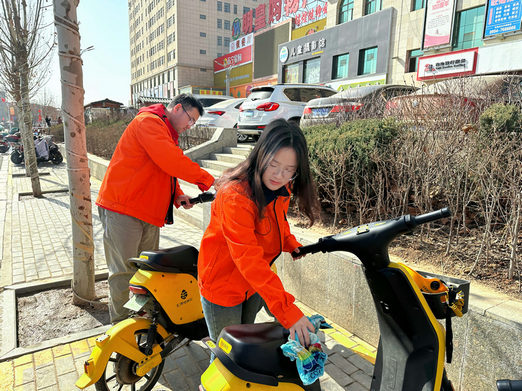 項(xiàng)目志愿者們自行配備了掃把、水盆、抹布、鐵鏟、夾鉗、竹竿、垃圾袋等工具,分別前往茹河周邊區(qū)域、繁華區(qū)的共享單車固定停放點(diǎn)、雷河灘公園開展清掃環(huán)境衛(wèi)生活動(dòng)。大家分工協(xié)作,一小隊(duì)手持掃把、夾鉗、鐵鏟撿拾草叢及道路垃圾、打撈河道和濕地白色污染物,另一小隊(duì)端著盆、拿著消毒酒精和衛(wèi)生工具,擦洗共享單車、兒童樂園設(shè)施、各種櫥窗、歇息桌椅板凳、垃圾桶等。他們不怕臟、不怕累,干得不亦樂乎,通過一個(gè)下午的勞動(dòng),周邊環(huán)境煥然一新。