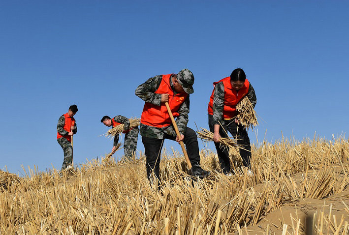 38團(tuán)訊(文/李秀梅 圖/孫宛玲)近日,塔克拉瑪干沙漠南緣有一抹“志愿紅”正在緊張有序的參與到防風(fēng)固沙草方格扎制工作中。據(jù)悉,自北新路橋國(guó)際工程事業(yè)部第二師38團(tuán)塔中沙漠公路項(xiàng)目開(kāi)工建設(shè)以來(lái),二師片區(qū)青年員工自發(fā)組建了一支青年志愿服務(wù)隊(duì),結(jié)合項(xiàng)目實(shí)際情況,持續(xù)開(kāi)展防風(fēng)治沙生態(tài)文明建設(shè)活動(dòng)。為進(jìn)一步弘揚(yáng)雷鋒精神,傳承紅色基因,北新路橋集團(tuán)國(guó)際工程事業(yè)部二師片區(qū)以“學(xué)雷鋒志愿服務(wù)”為抓手,組織青年志愿服務(wù)隊(duì)到沙漠進(jìn)行草方格扎制,為防風(fēng)固沙貢獻(xiàn)青春力量。