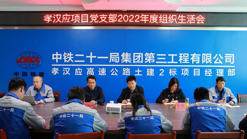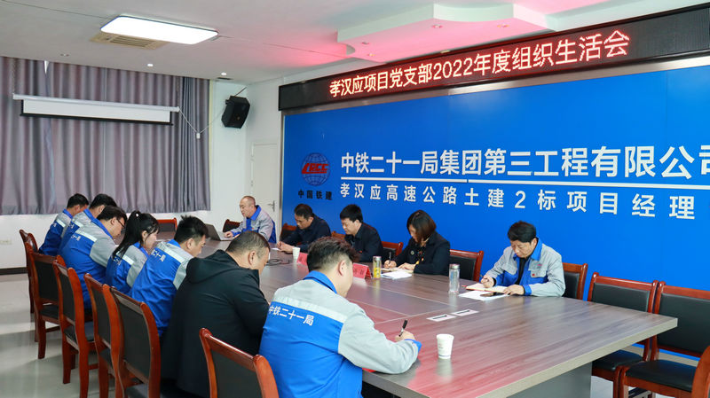 3月6日下午,中鐵二十一局三公司孝漢應(yīng)項目黨支部召開2022年年度組織生活會,孝漢應(yīng)項目黨支部全體黨員參加此次會議。中鐵二十一局三公司公司副總經(jīng)理張驊、公司副總工程師張鵬林、科技創(chuàng)新部副部長馮鈺列席指導(dǎo)此次組織生活會。