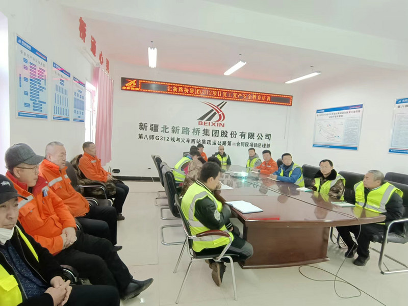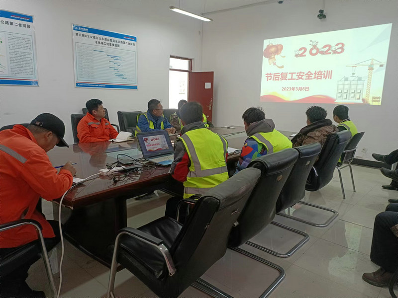 2023年3月6日,北新順通路橋公司G312項(xiàng)目全體員工與監(jiān)理單位在項(xiàng)目部辦公室開展復(fù)工復(fù)產(chǎn)安全教育培訓(xùn)。