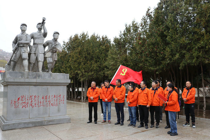寒風(fēng)似刀,雨雪如鹽,天空仿佛也在為在此安睡的烈士英靈默哀。吊唁廣場,佇立于烈士墓群前的雕像下,黨支部副書記帶領(lǐng)全體黨員復(fù)誦《清平樂·六盤山》,了解了“六盤山上高峰,紅旗漫卷西風(fēng)”的來歷。大家的心情肅穆、莊嚴(yán)、寧靜,耳邊聆聽著講解員和黨支部副書記講述異常激烈艱苦的任山河戰(zhàn)役,不禁勾起了對那段歷史的回望以及對那場戰(zhàn)役中犧牲烈士的哀思。