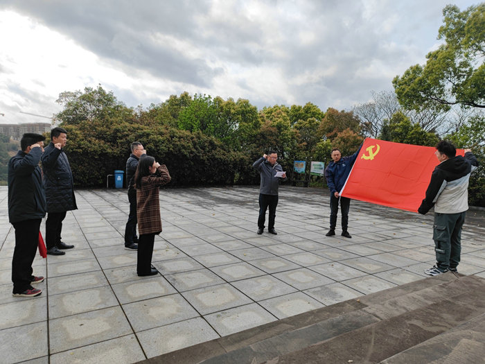 該項目部11名黨員懷著沉重的心情向雄偉的紀(jì)念碑默哀三分鐘,向革命烈士致以崇高的敬意,并向紀(jì)念碑敬獻(xiàn)了花籃,向烈士墓和朱楓烈士雕像敬獻(xiàn)了鮮花。全體黨員在紀(jì)念碑前合影,記錄下這難忘的時刻。他們面對鮮紅的黨旗莊嚴(yán)宣誓,錚錚誓言字字鏗鏘有力,表達(dá)了每個黨員對黨旗的敬畏之心,對黨的無限熱愛,對企業(yè)的無限忠誠和踐行初心使命的堅定信念和堅強(qiáng)決心。
