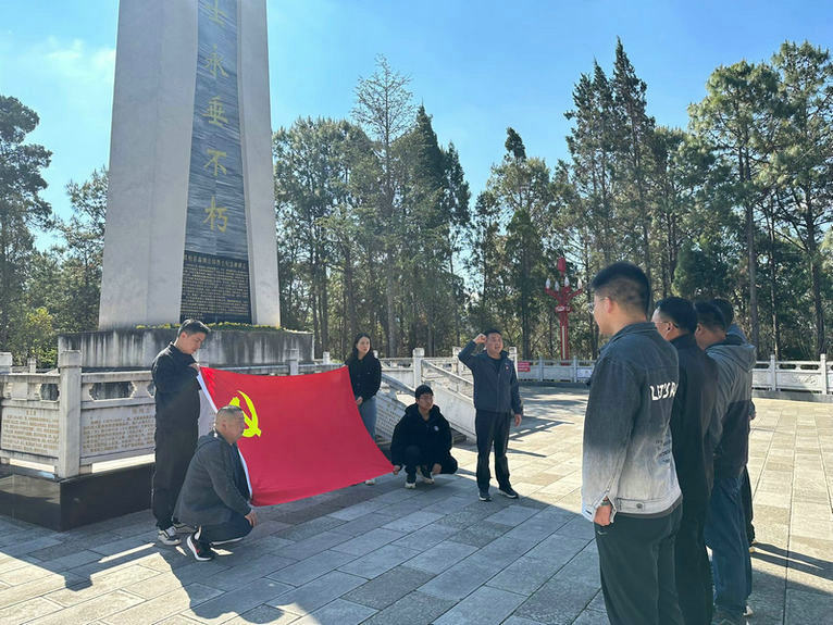 莊嚴(yán)的儀式在一片肅穆中拉開帷幕,項目代表向紀(jì)念碑敬獻了鮮花,全體人員默哀三分鐘并深深彎腰鞠躬,表達對烈士們的崇敬與尊重。項目黨員代表介紹了紀(jì)念碑上的浮雕內(nèi)容,感受先烈們的宏偉業(yè)績和英雄事跡。最后,全體黨員面向黨旗莊嚴(yán)宣誓、重溫入黨誓詞,感悟革命前輩深厚的為民情懷。