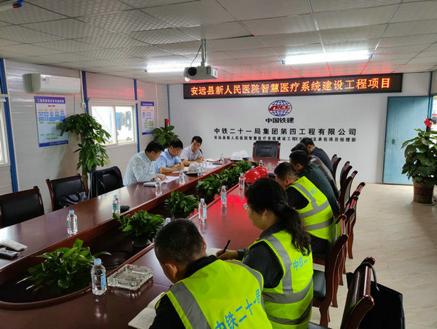 4月6日,中鐵二十一局四公司副總經(jīng)理張高放到安遠(yuǎn)縣新人民醫(yī)院智慧醫(yī)療系統(tǒng)建設(shè)項(xiàng)目檢查指導(dǎo)工作,項(xiàng)目部領(lǐng)導(dǎo)班子等陪同檢查。