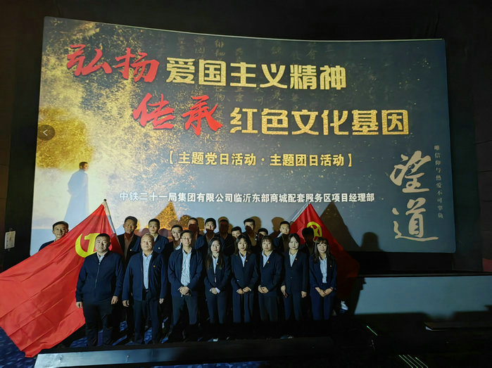 為學(xué)習(xí)貫徹黨的二十大精神,堅(jiān)定職工的信仰,弘揚(yáng)愛(ài)國(guó)主義精神。4月9日,中鐵二十一局臨沂東部商城配套服務(wù)區(qū)項(xiàng)目黨工委組織職工開(kāi)展“弘揚(yáng)愛(ài)國(guó)主義精神 傳承紅色文化基因”主題黨日、主題團(tuán)日活動(dòng),集體觀看愛(ài)國(guó)主義教育影片《望道》。