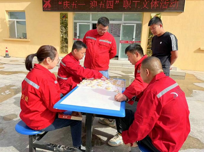 “大家在房子里面的,都出來活動了,我們的活動準備開始了,獎品豐厚……”隨著一聲聲吆喝聲在一師三團項目部的院子響起,一師三團項目慶“五一”、迎“五四”系列活動正式拉開帷幕。活動設(shè)有搶椅子、下象棋、一分鐘跳繩、企業(yè)文化知識問答等多個項目,集趣味性,娛樂性,協(xié)作性和競爭性于一身。過程中,參賽選手們精神抖擻、努力拼搏,無論場上還是場下,氣氛都異常激烈。經(jīng)過激烈角逐,項目部分別評選出一等獎、二等獎、三等獎及參與獎,項目領(lǐng)導(dǎo)分別為獲獎?wù)哳C發(fā)獎品,整場活動在一片歡聲笑語中落下帷幕。