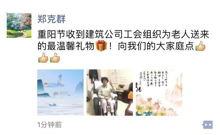 值此傳統(tǒng)節(jié)日“重陽節(jié)”,也稱“老年節(jié)”來臨之際,建筑公司為職工父母送去一份健康心意,代表遠(yuǎn)在施工一線的兒女們盡一份孝心、表達(dá)一份親意。