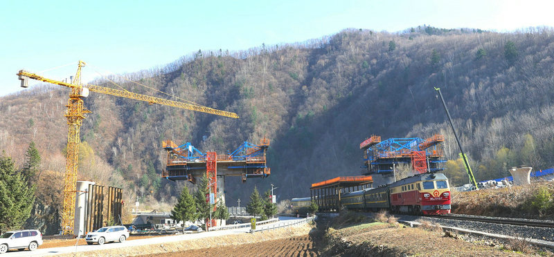 4月28日 13時(shí)20分,隨著沈白高鐵吉林段TJ-6標(biāo)湯河1號、2號大橋,長34米、寬7.5米、高6.5米的跨線鋼構(gòu)防護(hù)棚施工告捷,歷時(shí)21天的跨渾白鐵路營業(yè)線封鎖施工順利結(jié)束。為橋梁跨線部分掛籃施工開辟了綠色通道,筑起了確保施工期間鐵路運(yùn)輸安全屏障。