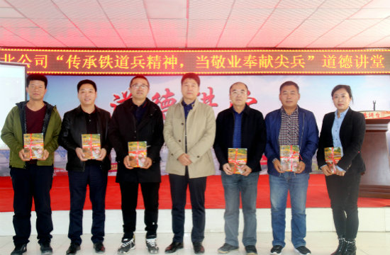 活動(dòng)最后,公司黨委書記韓福堂現(xiàn)場為職工“送吉祥”,贈(zèng)送書籍《中國鐵道風(fēng)景線》。韓福堂講到,“西北公司全體干部職工要進(jìn)一步修德進(jìn)業(yè),牢記鐵軍歷史,弘揚(yáng)鐵軍精神,久久為功,推動(dòng)公司做大做強(qiáng)。”
