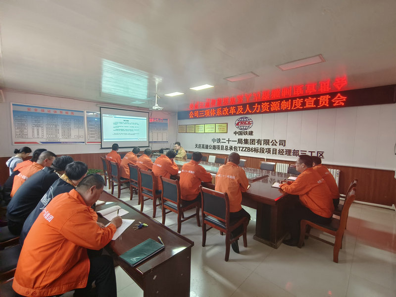 為深入貫徹落實(shí)中鐵二十一局四公司關(guān)于優(yōu)化選人用人機(jī)制、員工考核機(jī)制、薪酬分配機(jī)制三項(xiàng)體系以及規(guī)范公司崗位制度的相關(guān)要求,5月7日,中鐵二十一局四公司本部人力資源部在天莊高速公路項(xiàng)目召開了三項(xiàng)體系改革及人力資源管理制度宣貫會(huì),項(xiàng)目部全體員工參加。