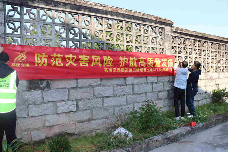 “我們地處浙江南部,受季風(fēng)影響強(qiáng)烈,洪澇、臺風(fēng)、雷電、強(qiáng)降雨、洪澇、滑坡、泥石流等災(zāi)害均可能發(fā)生,且發(fā)生的頻率比較高……我們應(yīng)當(dāng)知曉身邊自然災(zāi)害并掌握避險技能,保證自身和身邊人的安全。”宣傳周首日,項(xiàng)目安環(huán)部緊緊圍繞宣傳周主題召開動員部署會,組織全體職工進(jìn)行宣誓和簽名,并在項(xiàng)目駐地周邊懸掛宣傳橫幅,張貼宣傳海報、發(fā)放宣傳單等,將防災(zāi)減災(zāi)知識傳達(dá)給每個從業(yè)人員,切實(shí)保障活動注重效果、不走過場,確保工作取得實(shí)效。
