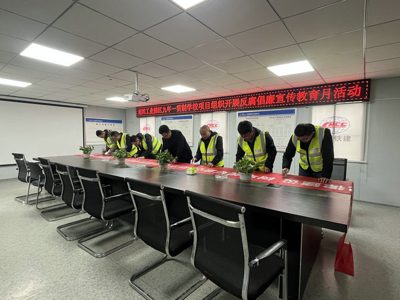 啟動(dòng)儀式上,項(xiàng)目總工宣讀了項(xiàng)目部反腐倡廉宣傳教育月活動(dòng)方案,對(duì)活動(dòng)內(nèi)容作了詳細(xì)部署,并號(hào)召大家要以反腐倡廉宣教月活動(dòng)為契機(jī),認(rèn)真學(xué)習(xí)黨紀(jì)國(guó)法企規(guī),深入踐行廉潔理念,切實(shí)加強(qiáng)新時(shí)代廉潔文化建設(shè),啟動(dòng)儀式上還進(jìn)行了廉潔宣誓、廉潔簽名等活動(dòng)。