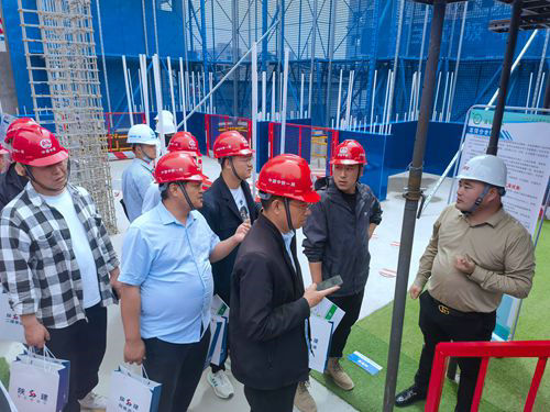 過程中,觀摩人員參觀了兩個(gè)項(xiàng)目的標(biāo)準(zhǔn)化施工現(xiàn)場(chǎng)、施工樣板間,詳細(xì)的對(duì)項(xiàng)目現(xiàn)場(chǎng)噴淋設(shè)施布設(shè)、臨電橋架標(biāo)準(zhǔn)化、大型設(shè)備防護(hù)、作業(yè)區(qū)域防護(hù)搭設(shè)、微型消防站、應(yīng)急物資庫房標(biāo)準(zhǔn)化建設(shè)、VR智慧體驗(yàn)管、成品保護(hù)、主體結(jié)構(gòu)工藝工法等進(jìn)行了取經(jīng)、交流。項(xiàng)目在施工現(xiàn)場(chǎng)綠色低碳文明施工、臨時(shí)用電、智能化工地建設(shè)等方面給一行人員留下了深刻印象。