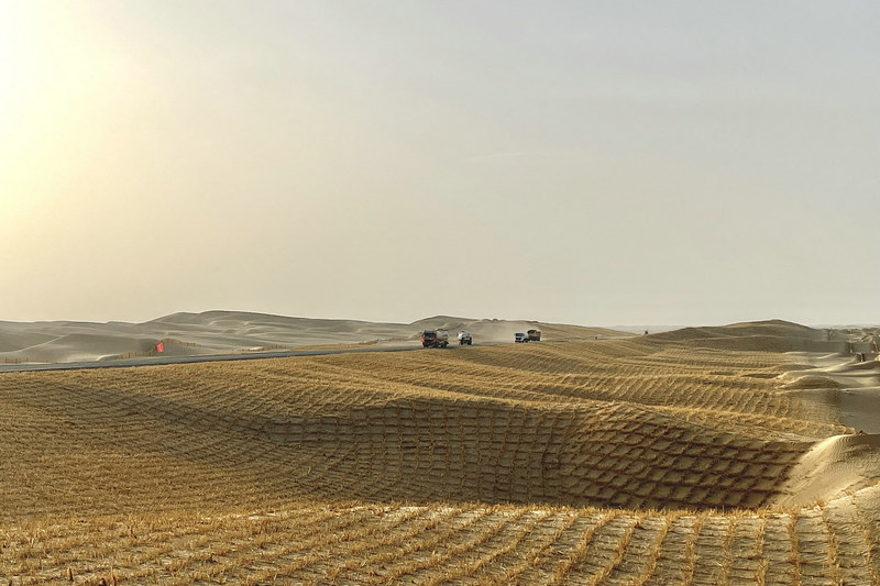 38團(tuán)訊(通訊員 崔振杰)5月15日,北新路橋集團(tuán)國際工程事業(yè)部第二師38團(tuán)至塔中沙漠公路項目上自卸車來回奔忙。該項目目前在沙漠中設(shè)有兩處營地點(diǎn),無信號、無水電,一切補(bǔ)給靠外部營地點(diǎn)運(yùn)輸,但就是在這樣越來越惡劣的變化中項目一點(diǎn)一滴推進(jìn)成型。如蒼龍潛地,飛沙走石中、艷陽高照時、萬里晴空下,自卸車往來奔忙、施工員駐足指揮、草方格徐徐鋪展,靜止與運(yùn)動的平衡中“沙漠黃龍”直搗天際。