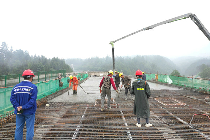 鐵路工程建設(shè)網(wǎng)訊(通訊員趙丹妮)5月10日,由中鐵十五局三公司承建的貴州劍黎高速公路TJ-8標(biāo)八舟河樞紐互通最后一聯(lián)現(xiàn)澆箱梁順利完成澆筑,標(biāo)志著管段重難點工程取得新進(jìn)展。
