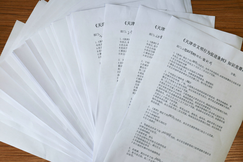為調(diào)動大家學習《天津市文明行為促進條例》的積極性,強化和檢驗學習效果,他們還組織了專門的知識競賽。內(nèi)容涉及《條例》的方方面面。通過組織大家答題,強化記憶、查漏補缺,讓《條例》內(nèi)容深入人心,增強大家文明意識的同時,推動大家把學習成果轉(zhuǎn)化為實實在在的文明行為。