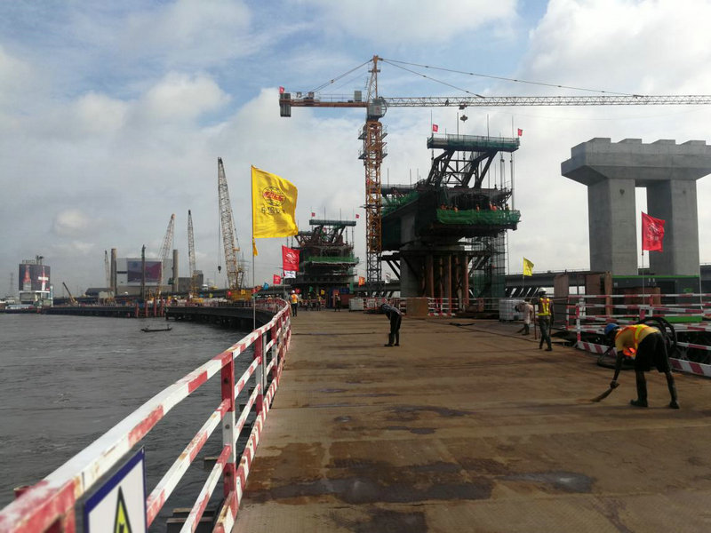 拉各斯輕軌跨Lagoon湖高架橋是尼日利亞首座采用掛籃施工的橋梁,全長530米,其中深水區(qū)380米采用剛構連續(xù)梁形式跨越。目前,該項目已進入懸灌梁施工階段,已成橋174.7米,完成總投資33%。