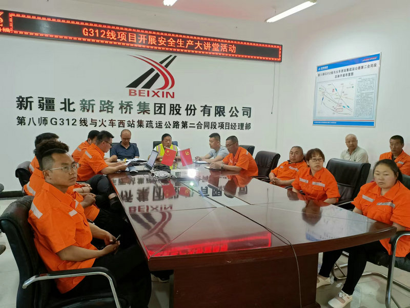 下圖為:新疆北新順通路橋公司G312線項目部開展安全生產(chǎn)大講堂活動
