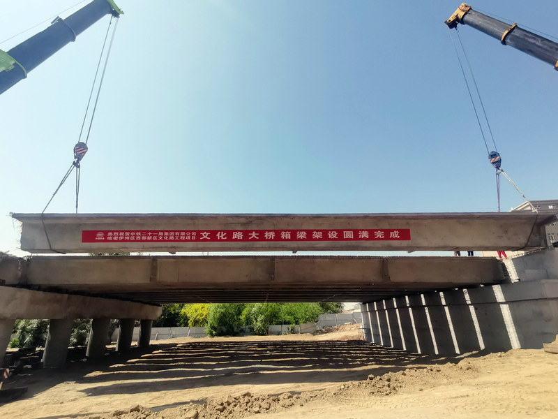 文化路大橋跨越西河壩,橫穿哈密河國(guó)家濕地公園,是集景觀性、功能性、環(huán)保性于一體的橋梁,既能滿足居民的出行需求,也能最大程度節(jié)約用地,更好地保護(hù)哈密河生態(tài)環(huán)境。此次大橋箱梁順利架設(shè)完成,打通了文化路全線最重要的施工斷點(diǎn),為后續(xù)水穩(wěn)基層及瀝青面層施工爭(zhēng)取了有效工期,下一步將全力以赴推進(jìn)施工建設(shè),確保今年9月按期開(kāi)通。