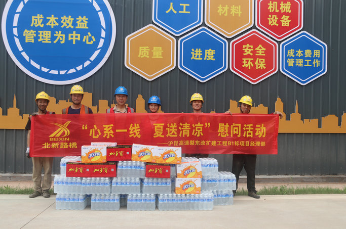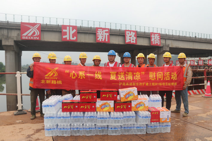 橫峰訊(通訊員翟潤(rùn)潔 蔡依琳 )炎炎夏日送清涼,絲絲關(guān)愛(ài)入心田。正值大干快上火熱施工期,江西上饒地區(qū)持續(xù)高溫悶熱天氣給堅(jiān)守一線的施工管理人員和建筑工人帶來(lái)了嚴(yán)峻“烤”驗(yàn)。5月31日,北新路橋集團(tuán)長(zhǎng)沙分公司滬昆高速梨園至東鄉(xiāng)段改擴(kuò)建工程B1標(biāo)項(xiàng)目(以下簡(jiǎn)稱:滬昆B1標(biāo)項(xiàng)目)根據(jù)長(zhǎng)沙分公司工會(huì)統(tǒng)一部署,組織開(kāi)展了“心系一線、夏送清涼”慰問(wèn)活動(dòng),為堅(jiān)守施工一線,不辭勞苦付出的施工管理人員和建筑工人,送上一份清涼、一份關(guān)懷。
